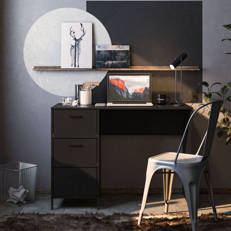 Este escritorio es la solución perfecta para quienes buscan un espacio de trabajo funcional, compacto y con estilo. Su diseño minimalista y el elegante acabado en color negro mate se adaptan a cualquier decoración moderna, escandinava o industrial, ideal para la oficina en casa, dormitorito o estudio.