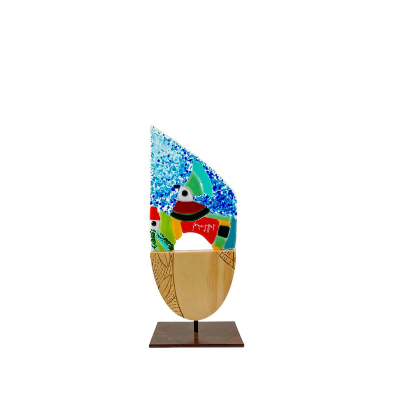 La "Visita Matutina" trasciende su función decorativa y se convierte en un portal hacia la belleza y la vitalidad de la naturaleza. Cada detalle cuidadosamente moldeado en vidrio captura la esencia y el esplendor de nuestro entorno natural, transportándote a un amanecer lleno de promesas. Los colores vivos y las formas orgánicas hacen de esta pieza una verdadera joya visual.