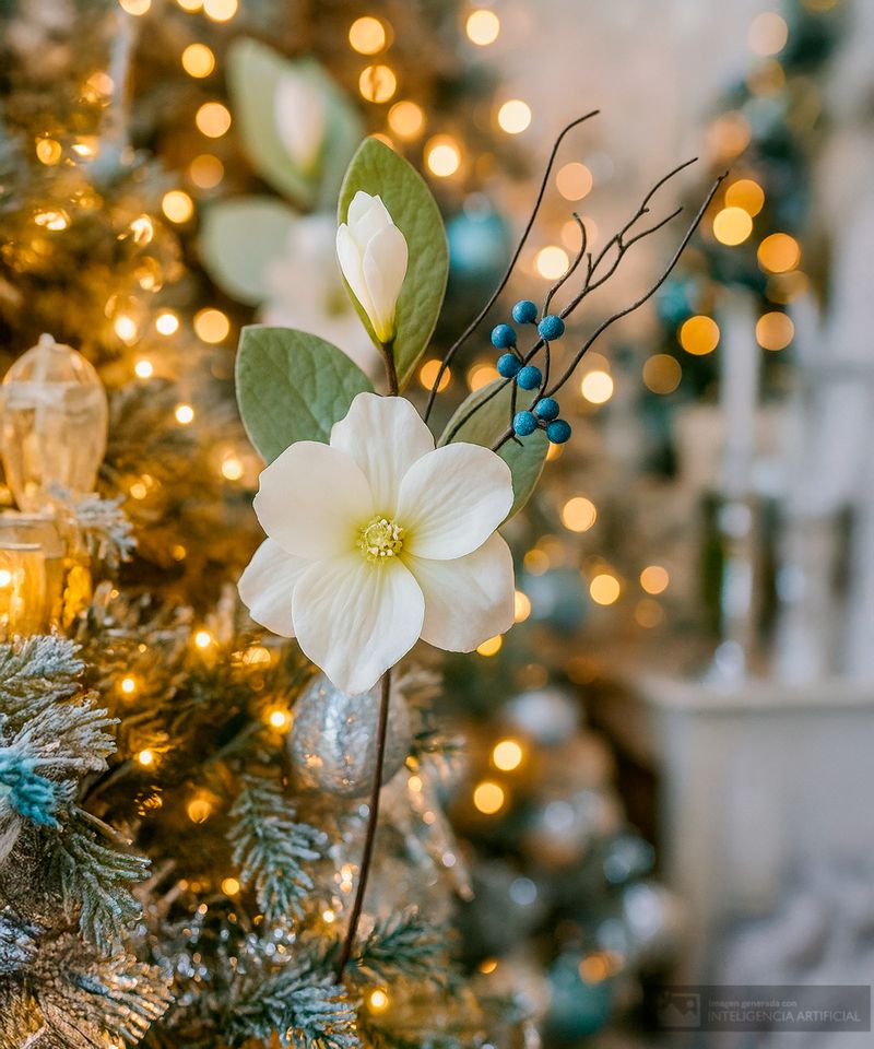 Flor magnolia blanca con bayas 13 x 42cm.