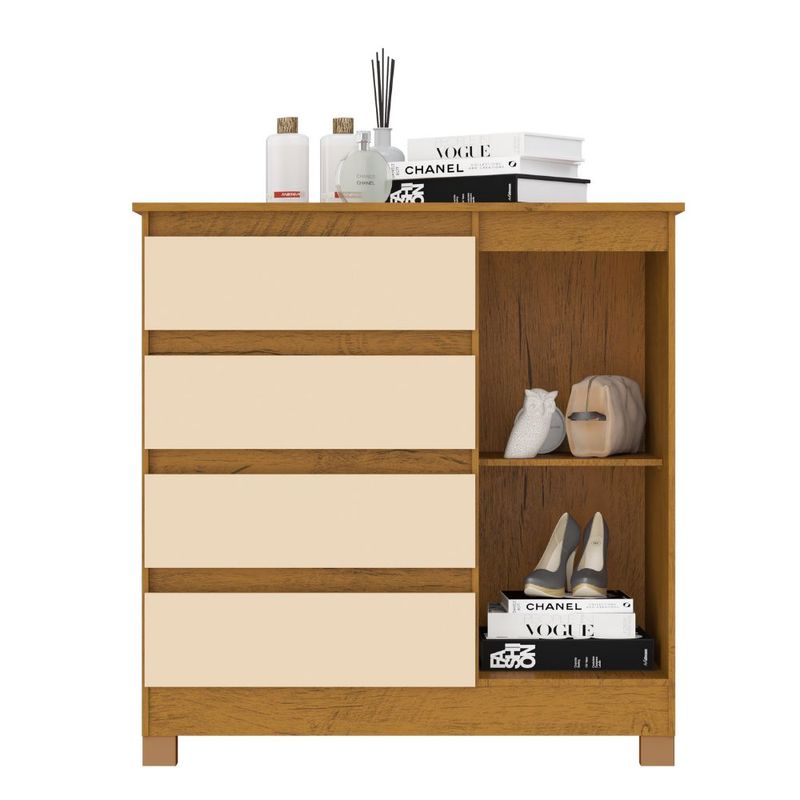El gavetero Milao ofrece 4 cajones espaciosos y compartimento con puerta en color Noce/Perla.