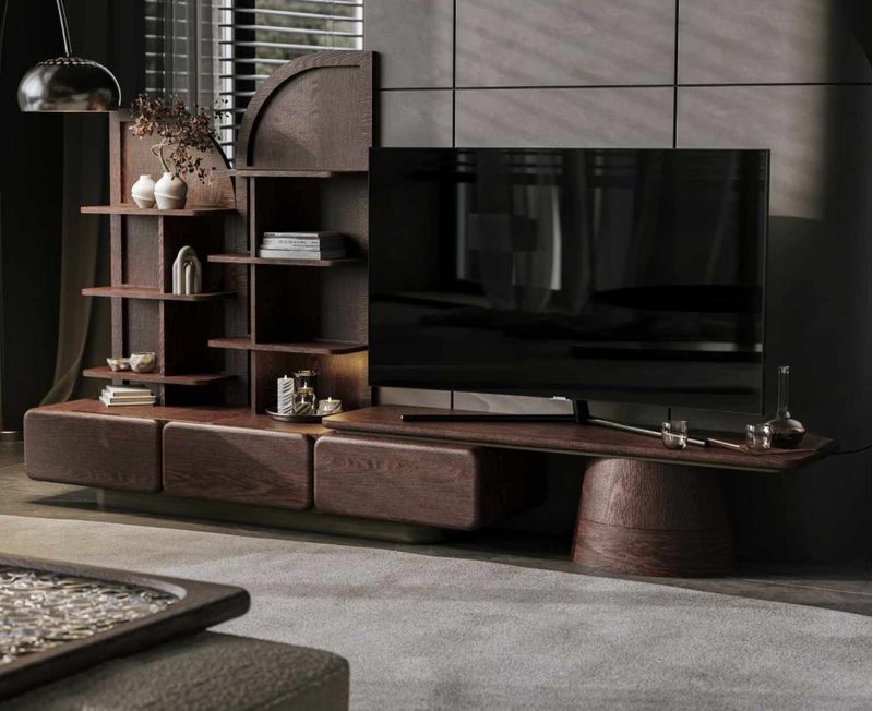 Este mueble de TV está elaborado en fina madera de Nogal europeo, reconocida por su veta sofisticada, tonos cálidos y durabilidad excepcional. Su diseño elegante y único combina líneas limpias con detalles cuidadosamente trabajados, convirtiéndolo en una pieza protagonista dentro de cualquier espacio.