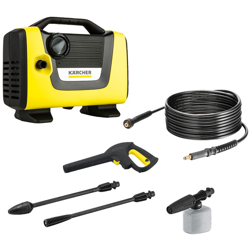 - Depósito de detergente, un amplio interruptor de encendido/apagado, una pistola pulverizadora manual ergonómica y una manguera de alta presión con protección antidobleces en ambos lados son otras características prácticas.