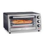 El horno tostador Hamilton Beach Sure-Crisp Air Freyer combina la funcionalidad de freír con la versatilidad de un horno tostador clásico. Es fácil de usar: simplemente agregue alimentos a la cesta de malla sin hacinarla, deslice en el horno y coloque la bandeja para hornear debajo. Como horno tostador, se adapta a 4 rebanadas de tostadas.