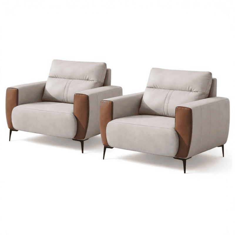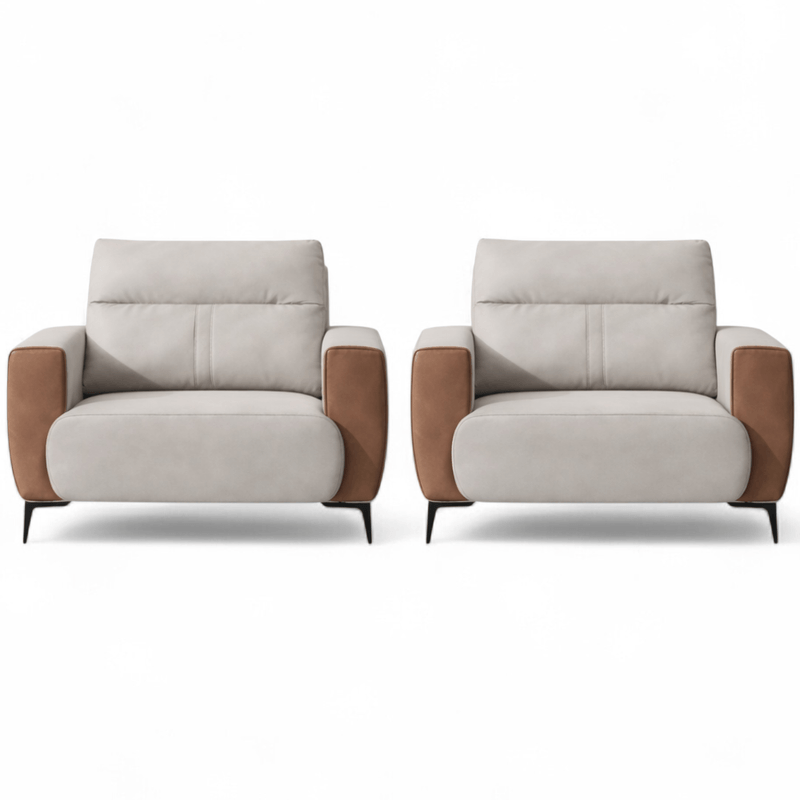 Moderno juego de sala de 3 piezas, integrado por un sillón central para 2 personas y dos sillones individuales para 1 persona. Diseñados para ofrecer una experiencia superior de descanso en el hogar, espacios residenciales o de recepción. Cuentan con tapizado en polipiel de alta calidad, combinando elegancia con resistencia y fácil mantenimiento, mientras sus asientos amplios con relleno acolchado de alta densidad proporcionan una sensación envolvente de comodidad, ideal para relajarse durante largos periodos. Los sillones incorporan una estructura firme que garantiza estabilidad y durabilidad, acompañado de patas metálicas que aportan soporte y un estilo contemporáneo. Combinando confort, funcionalidad y armonía visual, perfecto para crear ambientes acogedores sin renunciar al diseño a la moda.