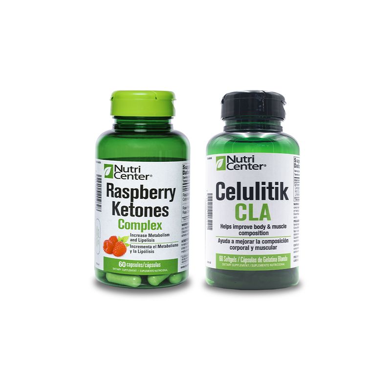 Incluye: 1 rasberry ketones: se conocen como un termogénico natural, puede ayudar a controlar el apetito y en la descomposición de las moléculas de grasa. y 1 celulitik cla Ácido Linoleico Conjugado (CLA) Apoya en la pérdida de peso, promueve la reducción de grasa corporal y aumenta la tasa metabólica. Promueve la reducción de celulitis y ayuda a tonificar el cuerpo