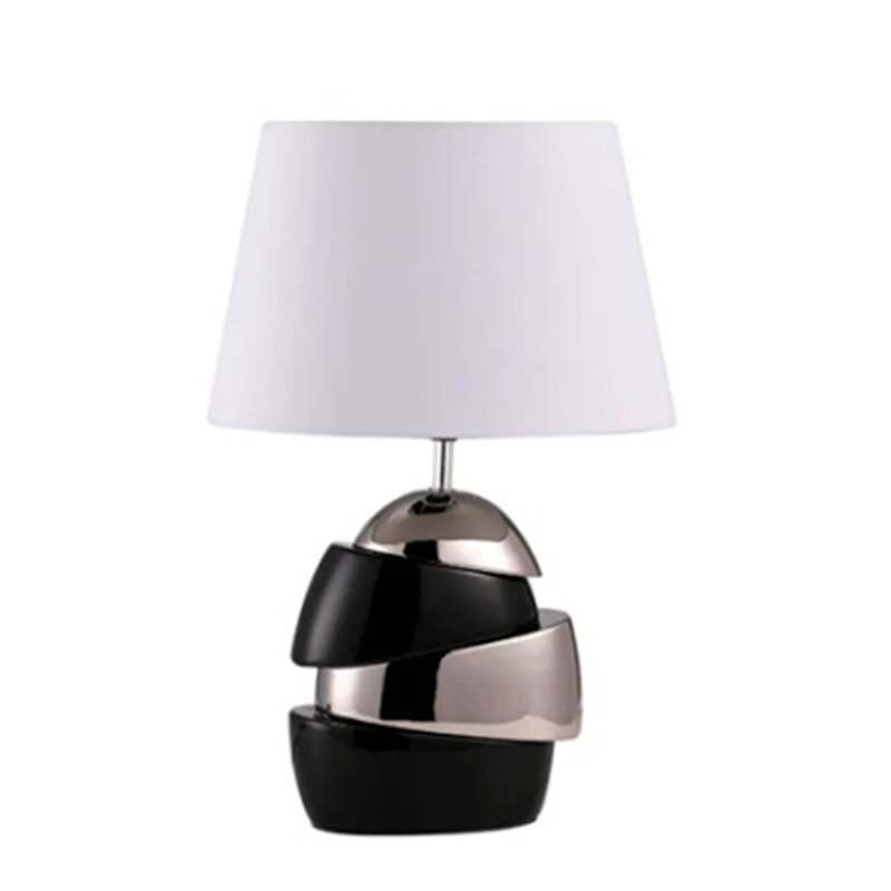 Lampara de mesa de ceramica color negra y cromado con pantalla de tela blanca, 1 luz - para bombillo e27 (bombillo no incluido)