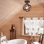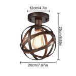 Lámparas de pasillo: La lámpara de techo rústica está hecha a mano y metal con acabado de bronce para ofrecerte una sensación campestre, antigua y tradicional. Diseño de jaula de hierro de forma redonda para añadir un aspecto retro, artístico y encantador. La lámpara de techo de granja puede crear un ambiente acogedor, de naturaleza y amor.