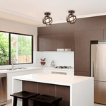 Materiales y dimensiones de la lámpara de araña Orbe: este techo de lámparas de cocina consta de 5 círculos de metal y tiene una calidad fuerte. Qué lámpara de techo industrial de durabilidad es. La dimensión de la lámpara de techo rústica empotrada de chapa de hierro es de 4.3 in de ancho x 0.079 in de grosor.