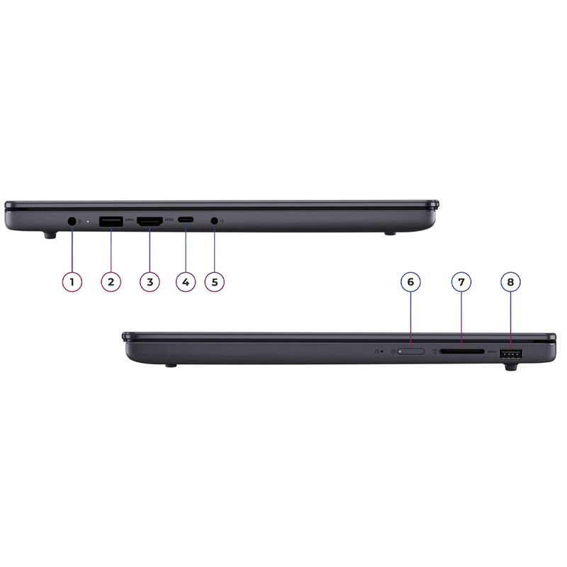 - Puertos: 2x USB-A, 1x USB-C (PD 3.0 + DisplayPort), HDMI 1.4, combo audio, lector SD, conector de energía