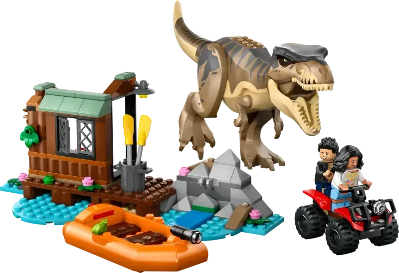 Juego LEGO® Jurassic World huida por el Río y T. rex a la caza para niños a partir de 5 años.