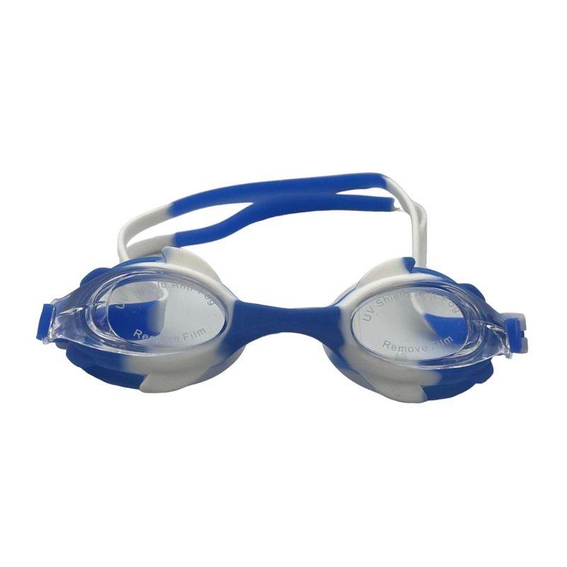 Lentes de natación de textura de animales en talla infantil, material de goma, disponibles en colores: Rosado y amarillo, azul y blanco, celeste y amarillo, blanco y negro