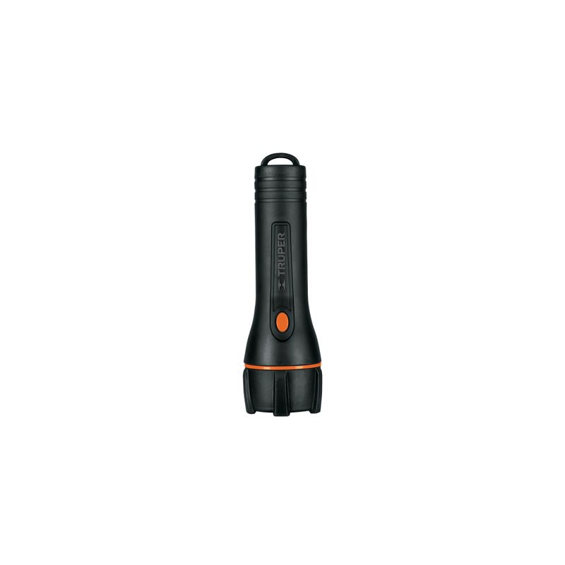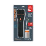 Linterna LED de alta luminosidad con 180 lúmenes y alcance de hasta 200 m. Diseño antiderrape, resistente a impactos y salpicaduras de agua. Incluye pilas alcalinas tipo D de larga duración.