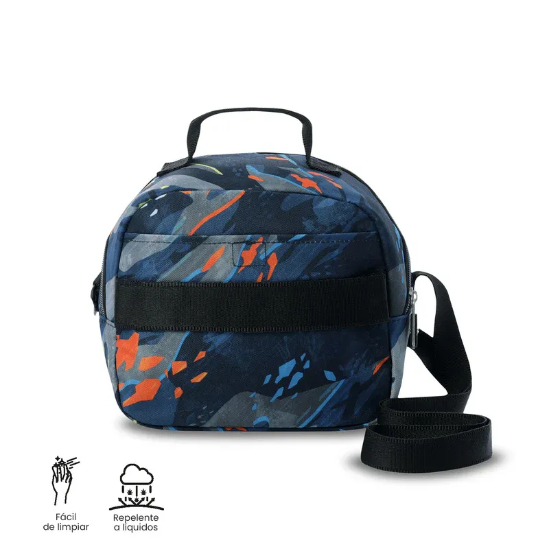 Está fabricada con materiales resistentes y repelentes a líquidos, lo que facilita su limpieza y mantenimiento. Además, incorpora un pasador para sistema de ruedas que permite ajustarla a una maleta de viaje, brindando mayor comodidad en desplazamientos.