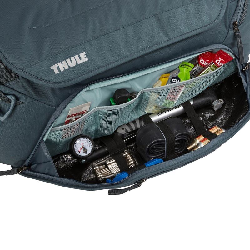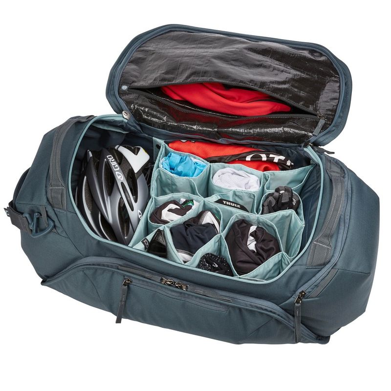Ten todo tu equipo de ciclismo disponible y organizado desde donde sea que inicie tu recorrido: en el comienzo de una senda, el punto de salida de una pista de carreras, el destino de fin de semana o en casa. La capacidad total de 55 litros permite guardar un equipo de bicicleta de carretera o de montaña para 3 a 5 días, incluyendo los accesorios de temporada. Organiza kits coordinados, chaquetas y accesorios en los bolsillos individuales para celular. Visibilidad y acceso eficiente a todos los compartimientos gracias a la estructura tipo bolsa y a la gran apertura. Bolsillo exclusivo para zapatos forrado en lona para una limpieza fácil. Empaca cómodamente cascos de carretera o sendero de cualquier tamaño en el compartimiento exclusivo. Guarda la ropa sucia o la ropa de ciclismo en el versátil bolsillo de la tapa. Usa la correa para el hombro desmontable de forma cruzada para un transporte estable mientras caminas o montas una bicicleta. Mantén los alimentos, las herramientas pequeñas o los artículos para la carrera visibles, pero separados de la ropa en el bolsillo delantero. mantén segura la billetera en el bolsillo exterior con cremallera