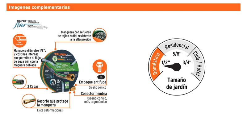 Diseñada para un uso doméstico confiable, esta manguera resistencia y practicidad. Su estructura de 3 capas mejora la durabilidad, mientras que las conexiones metálicas con resorte protegen los extremos y previenen deformaciones con el paso del tiempo.