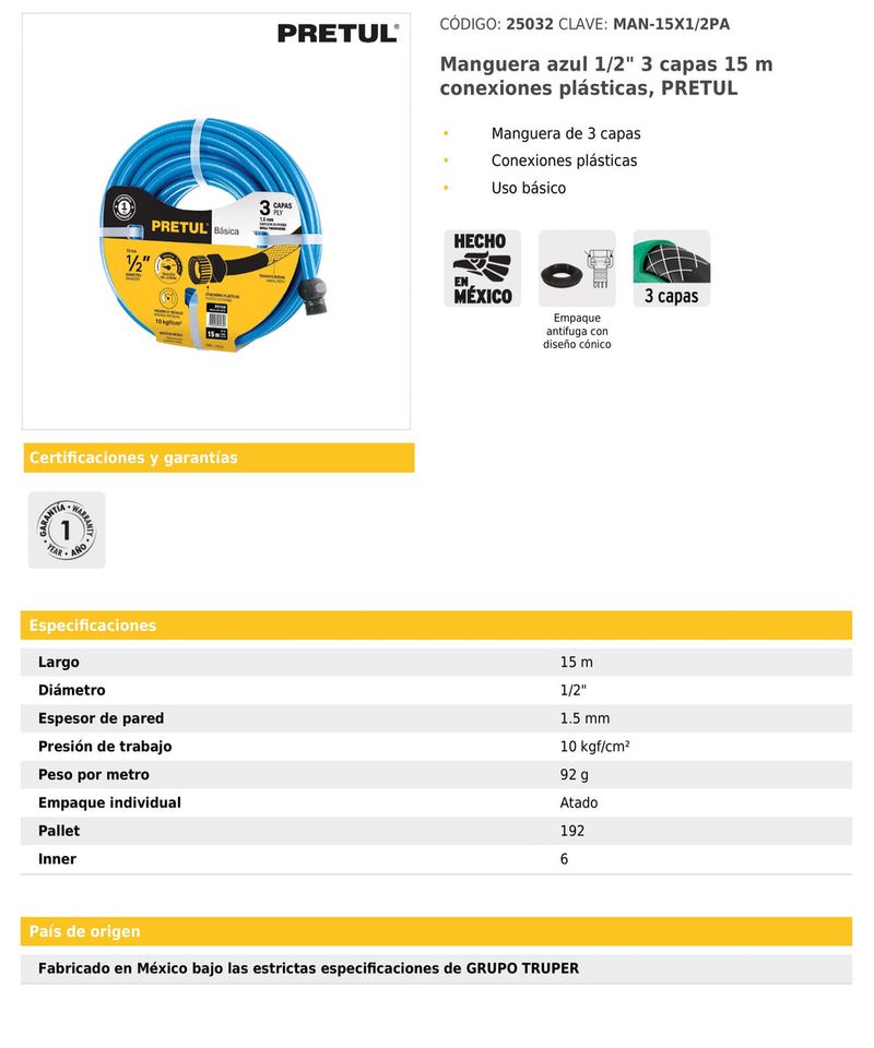 Longitud de 15 m con conexiones plásticas ergonómicas