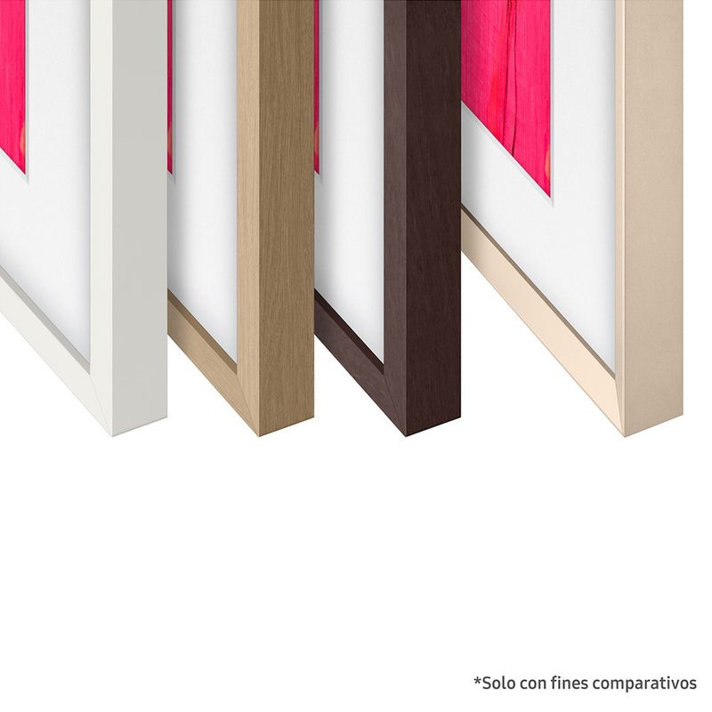 El Marco Intercambiable para The Frame de 75" transforma tu televisor en una pieza decorativa elegante que se adapta a cualquier estilo. Su acabado moderno en color Teca y su sistema magnético permiten instalarlo o cambiarlo en segundos, combinando perfectamente con tu espacio, tu mobiliario o la obra de arte que decidas mostrar en pantalla.