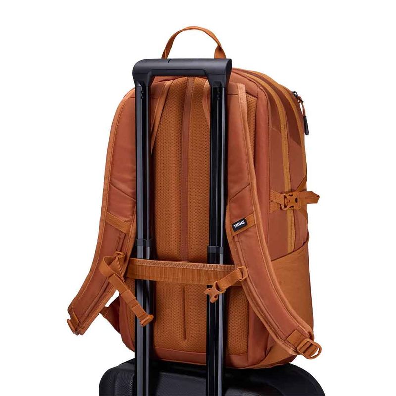 El bolsillo con forro suave ofrece acceso rápido y resguarda un teléfono, lentes de sol u otros artículos valiosos. Los bolsillos elevados y dedicados protegen una laptop de hasta 16" y una tableta de hasta 10,5".El panel de organización facilita el acceso a accesorios pequeños, bolígrafos y llaves. El compartimiento secundario almacena una muda de ropa, accesorios u otros artículos personales y tiene un bolsillo de TPU con cremallera que es resistente al agua para proteger el contenido y es opaco para ofrecer privacidad. Los bolsillos laterales exteriores con malla se estiran para almacenar una botella de agua, un cargador o un paraguas. El panel atravesado permite amarrar la mochila al equipaje con ruedas para viajar con más facilidad. Correa para el esternón, panel posterior acolchado con canal para el flujo de aire y correas laterales de compresión para equilibrar la carga, hacen que su transporte sea más cómodo. Construida con nailon 400D aprobado por bluesign® con cremalleras YKK.