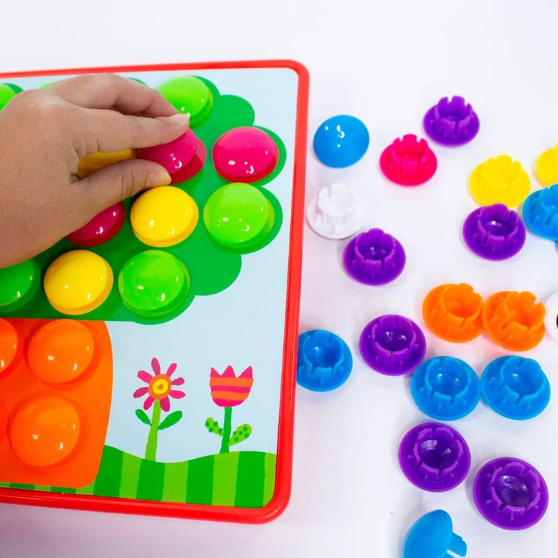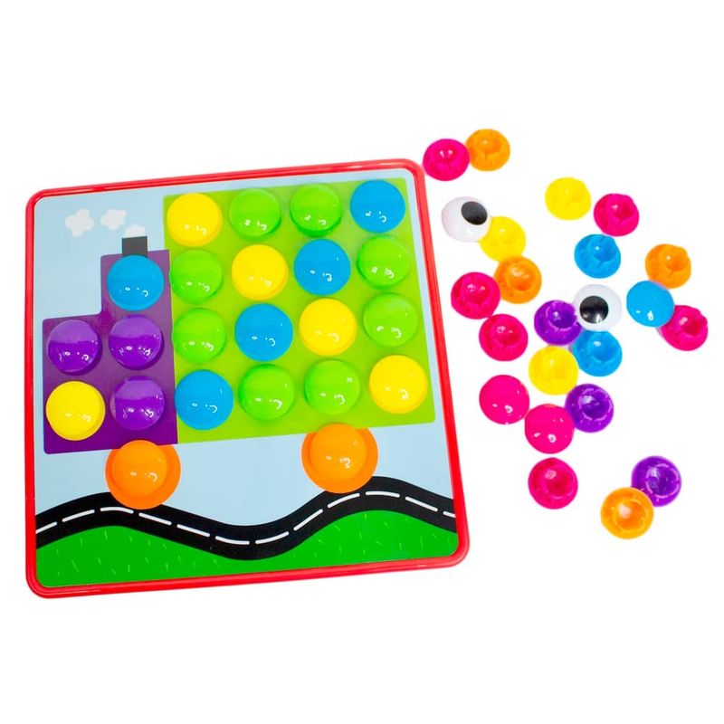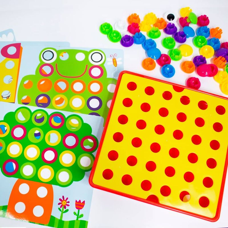Este juego permite a tus pequeños escalar en sus habilidades de asociación y motricidad fina. Con las diferentes plantillas que contienen, pueden ir siguiendo el patrón de colores para recrear cada uno de los objetos. El tamaño de los pines los hace perfectos para que los puedan manipular con sus manitas.