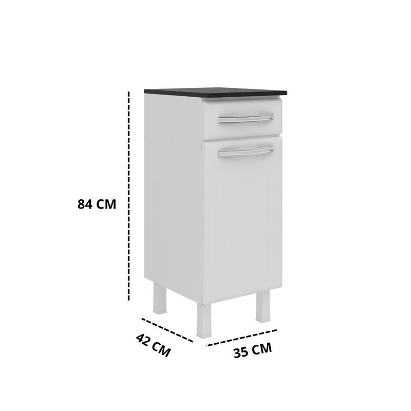 Su diseño limpio y minimalista en color blanco se complementa con una encimera en acabado oscuro (simulando mármol) que aporta un toque de sofisticación.