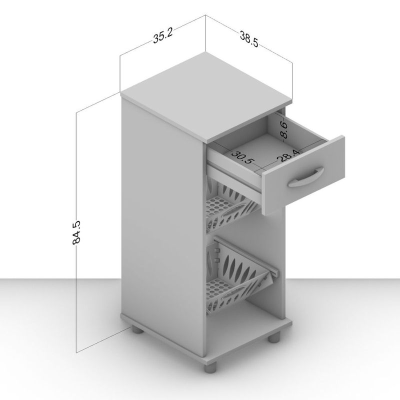 Incluye un cajón superior para utensilios y dos cestos para fruta.