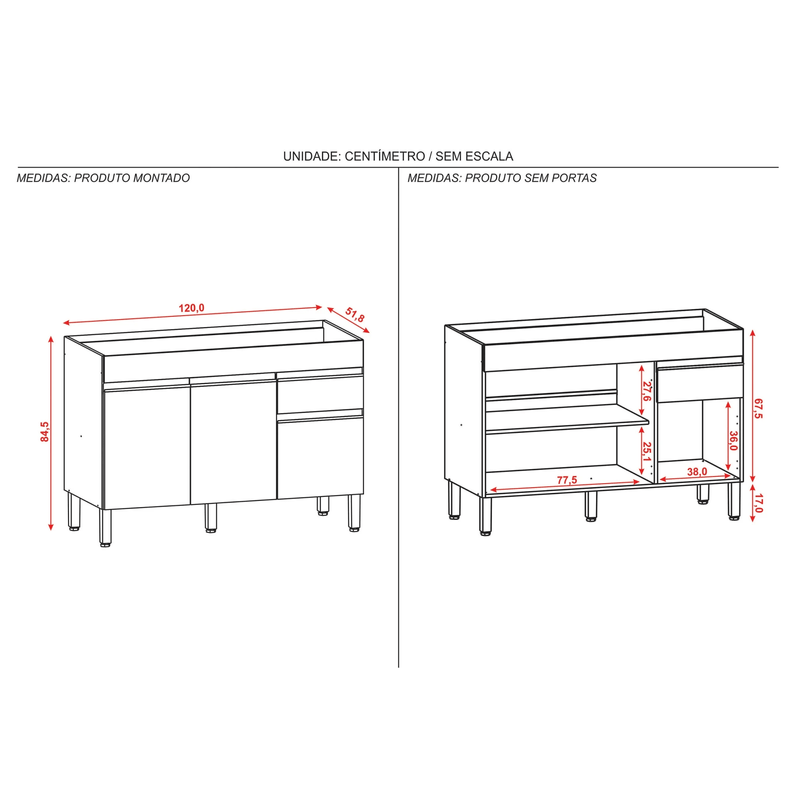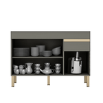 El Mostrador Línea 120 cuenta con 3 puertas con 100 bisagras metálicas que garantizan mayor seguridad y calidad al producto, con manijas en perfil de aluminio con pintura epoxi y estantes internos que permiten una mejor organización de los artículos. Además, cuenta con 1 cajón con corredera telescópica metálica de 100 que permite una amplia apertura con suave deslizamiento, además de pies regulables.
