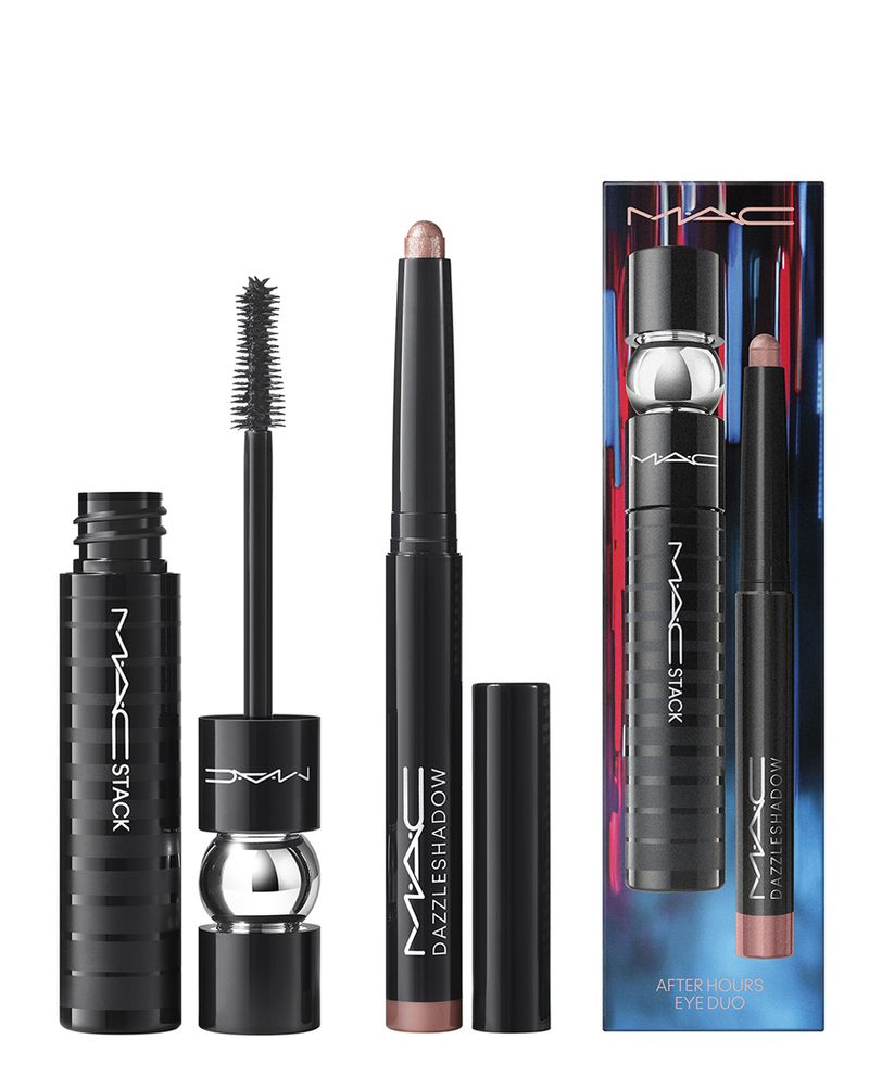La máscara de pestañas M·A·CStack es una máscara infinitamente construible y resistente a los grumos que añade capas infinitas de volumen y longitud. La sombra de ojos en barra Dazzleshadow se puede usar como sombra o delineador con una fórmula fácil y versátil que proporciona un color audaz con un acabado mega-metálico y una duración de 12 horas. Este kit del tamaño de un clutch viene vestido y listo para salir en un empaque de edición limitada (a precios de happy hour).