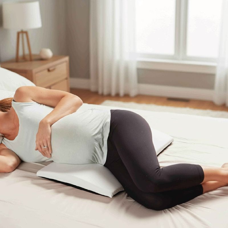 Diseñada con una inclinación ergonómica que proporciona soporte suave pero firme en la zona abdominal, lumbar o entre piernas, ideal para el descanso el embarazo o el postparto.