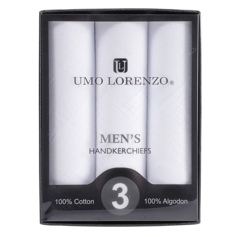 Paquete de 3 pañuelos marca Umo Lorenzo en color blanco con diseño texturizado para hombre.