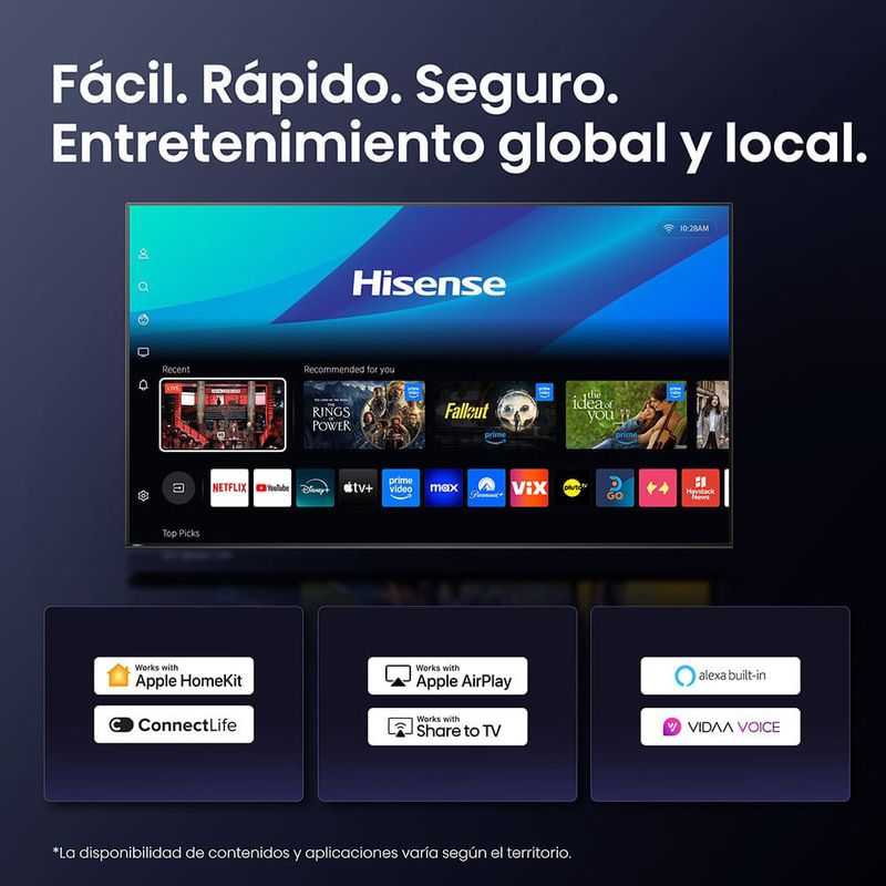 La Hisense 65U6QV MiniLED ofrece una experiencia visual superior con tecnología Quantum Dot y MiniLED, que entregan colores vivos y negros profundos. Su modo juego reduce el retardo y optimiza la imagen con IA para fluidez total. Dolby Vision y Atmos elevan imagen y sonido a nivel cinematográfico. Smart TV con VIDAA U9 y conectividad avanzada.