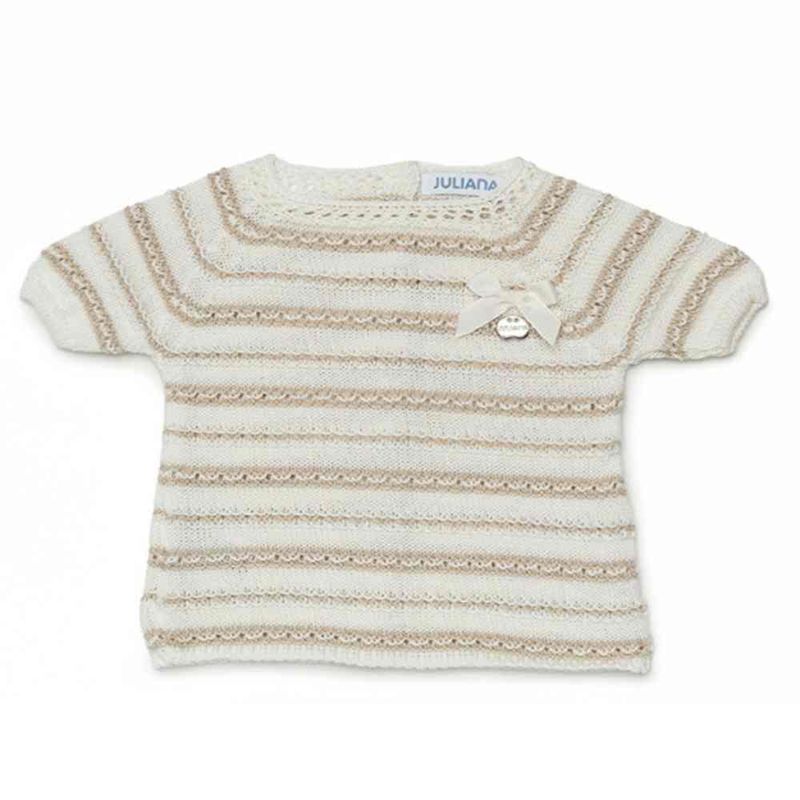 Conjunto de 2 piezas perfecto para la temporada verano, camisa manga corta combianada en crudo y beige y una comada ranita a juego en tono beige.