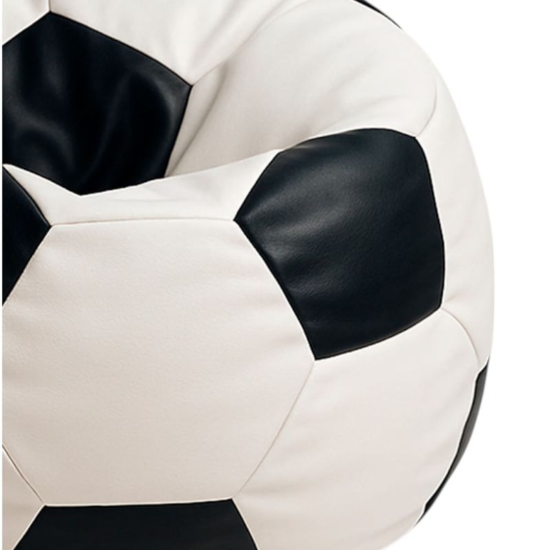 El diseño del puff incluye detalles que imitan una pelota de futbol, como los paneles hexagonales y pentagonales, elaborado en semicuero resistente, reforzado con firmes costuras e incluye un zipper que permite acceder al relleno del asiento, lo que facilita su limpieza, refilaje y mantenimiento.