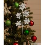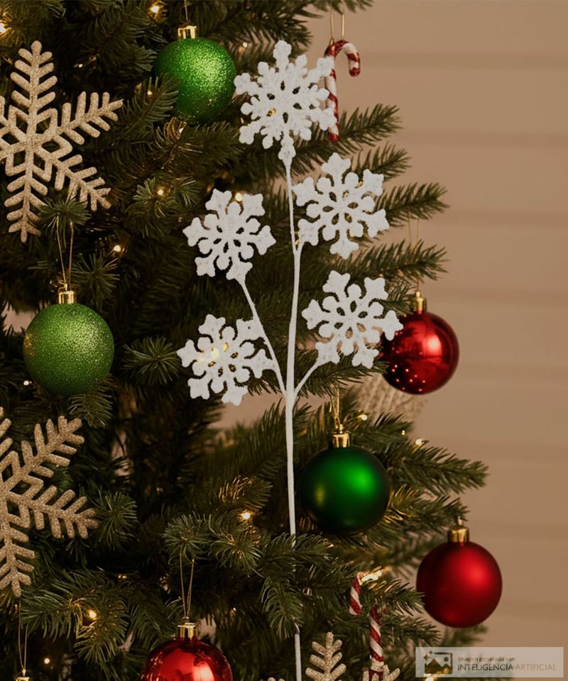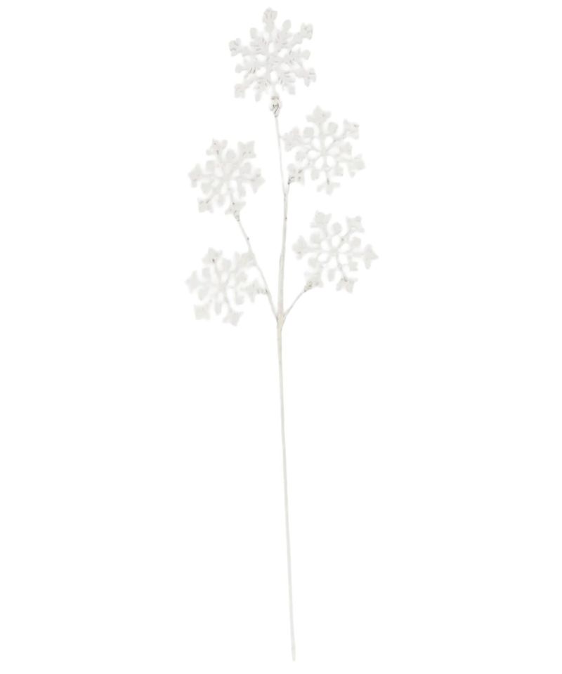 Rama decorativa con copos de nieve en color blanco con glitter.