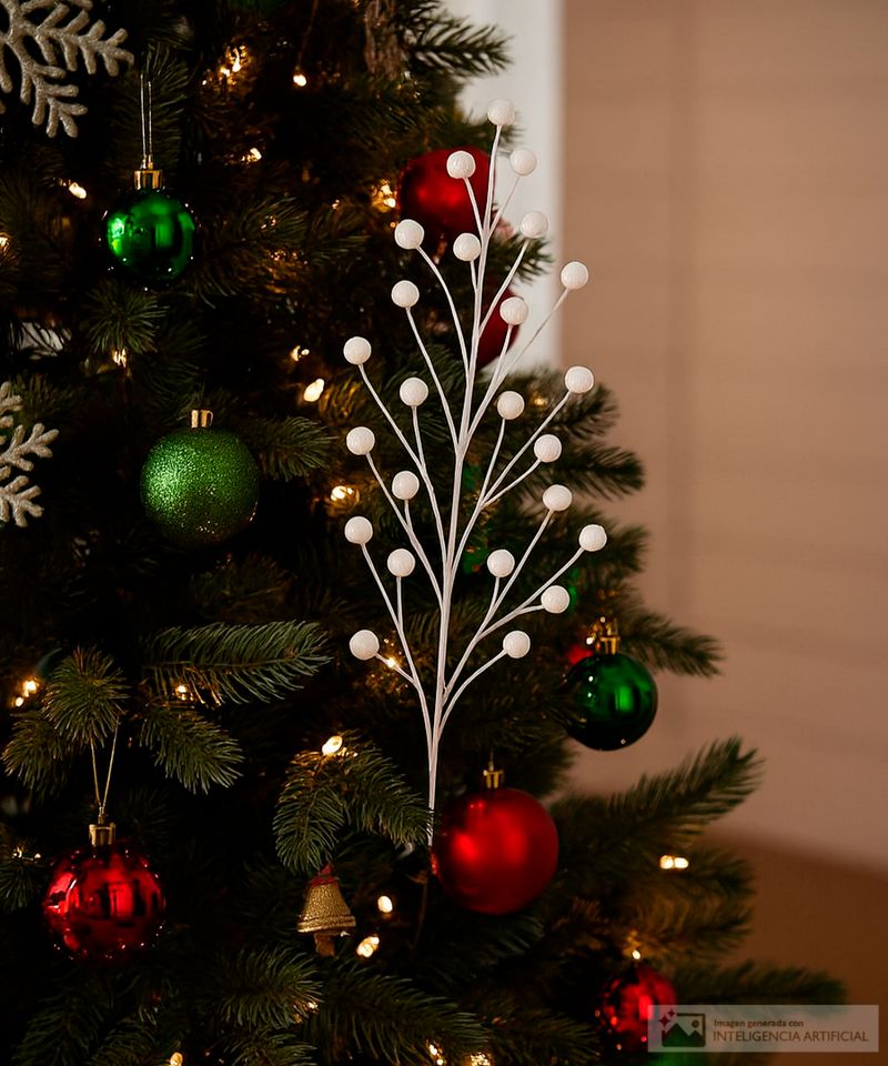 •Mide 70 cm de alto. •Materiales: tela, alambre y plástico. •Detalle de perlas color crema en cada rama. •Ideal para centros de mesa y decoraciones navideñas.