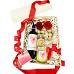 Botella 750 Ml Vino Chileno y vela con diseño de temporada a juego Copa, Snacks, Chocolates, Rosas naturales Caja de cartón decorada color blanco o negro según disponibilidad. tarjeta. Gratis: Personalizado en Copa