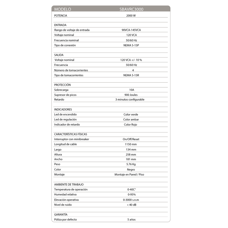 Al combinar avanzadas funciones de estabilización, la supresión de sobretensión con el ltraje de ruido en un diseño robusto, este regulador garantiza el suministro uniforme y limpio de energía eléctrica a todos los dispositivos conectados. Las extraordinarias características de protección, junto con la cubierta metálica de este AVR, lograrán superar sin lugar a dudas cada una de sus expectativas