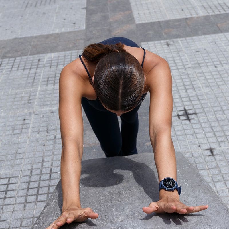 Mantente activo con GPS conectado al móvil, guías animadas de entrenamiento y más de 100 modos deportivos. Mejora tu bienestar con análisis del sueño y Sleep Score, Health Snap para revisiones rápidas en solo 90 segundos, y monitorización 24/7 de la frecuencia cardíaca, SpO2, VO2 Max, estrés y ciclo menstrual.