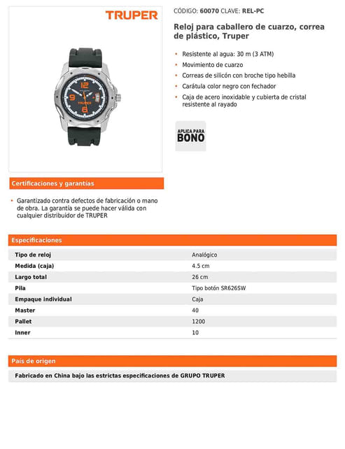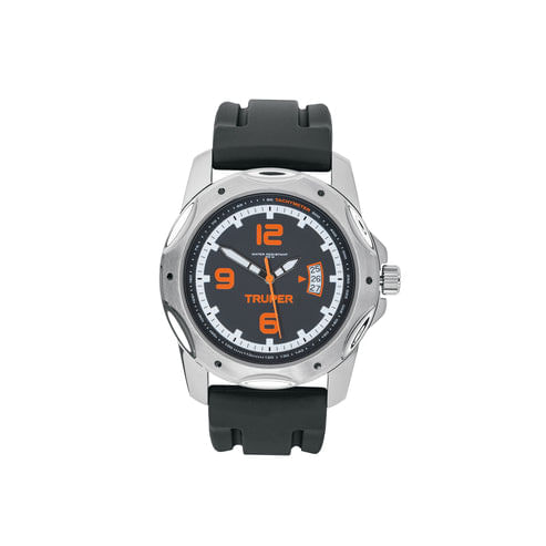 Reloj analógico para caballero equipado con movimiento de cuarzo y correa de silicón con broche tipo hebilla. Cuenta con carátula negra con fechador, además de una caja de acero inoxidable y cristal resistente al rayado. Su resistencia al agua de 30 m lo convierte en una opción práctica para uso diario.