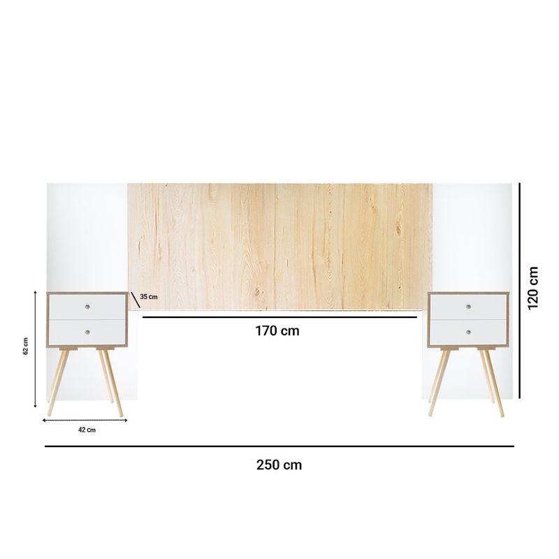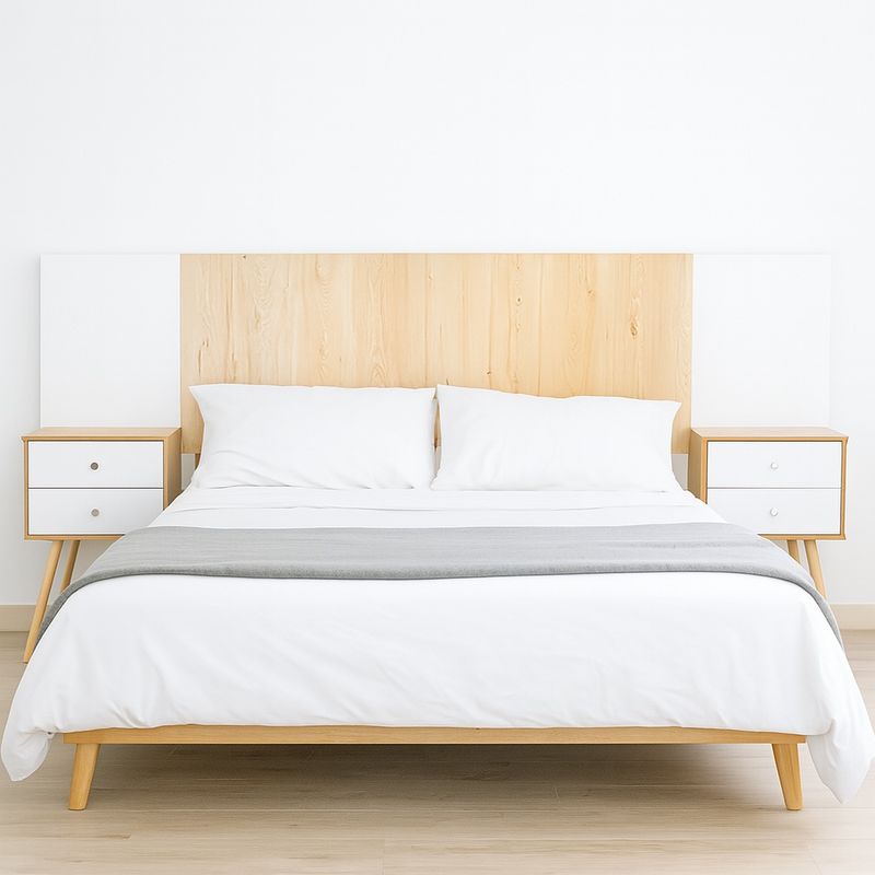 El respaldo KANSA para cama tamaño Queen destaca por su diseño limpio y la calidez de su acabado en madera clara, fabricado con melamina chilena de 15 mm y materiales de alta calidad que garantizan durabilidad. Se complementa a la perfección con dos mesas de noche VELVET, que combinan funcionalidad y estilo con su diseño moderno y amplio espacio de almacenamiento. Una combinación ideal para transformar tu dormitorio en un espacio acogedor y con carácter. ¡Dale un toque moderno a tu hogar!