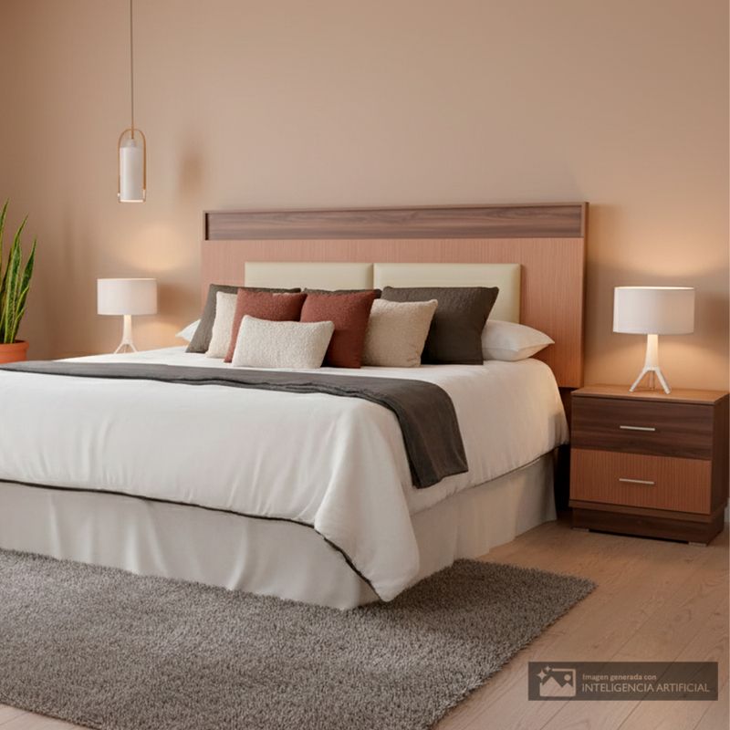 Con un diseño elegante y moderno, el respaldo Vera Queen destaca por su combinación de tonos nogal y beige. Su panel acolchado central brinda confort y un toque sofisticado, ideal para complementar habitaciones contemporáneas con estilo y funcionalidad.