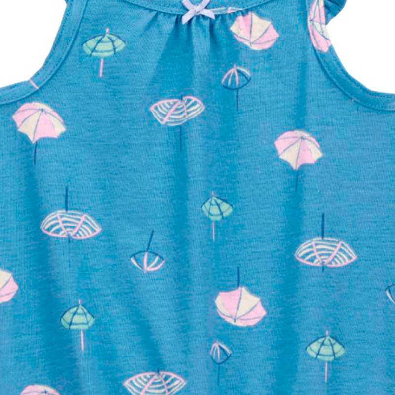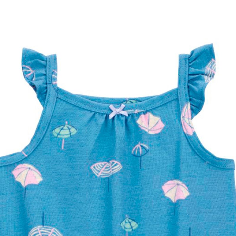 Mantén a tu bebé niña cómoda en cualquier actividad diaria con este romper azul con cuello recto, con tirantes con revuelos, cuenta con broches en la entrepierna que facilitan tanto el cambio de pañal como vestirse rápidamente, con diseño estampando, es una prenda súper practica que se combina con cualquier prenda de su armario.