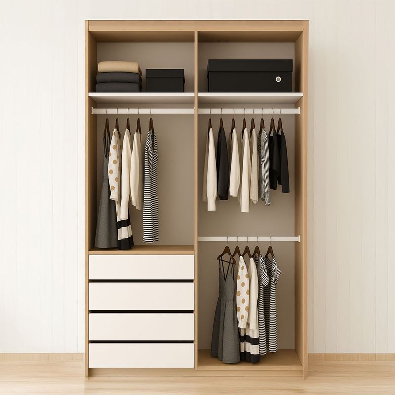 Luminoso, moderno y funcional. El clóset Lumen cuenta con cajoneras integradas y espacio de almacenamiento superior, fabricado en melamina chilena de 15 mm. Su diseño en blanco con detalles en madera clara aporta amplitud y claridad a cualquier dormitorio. ¡Haz de la organización una experiencia elegante! ? Hecho en El Salvador.