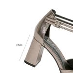 Luce elegante y sofisticada con esta sandalia metalizada. Su diseño con doble hebilla ajustable al tobillo y tacón altura de 7.5 cm aporta estabilidad y estilo, ideal para eventos formales o salidas nocturnas.