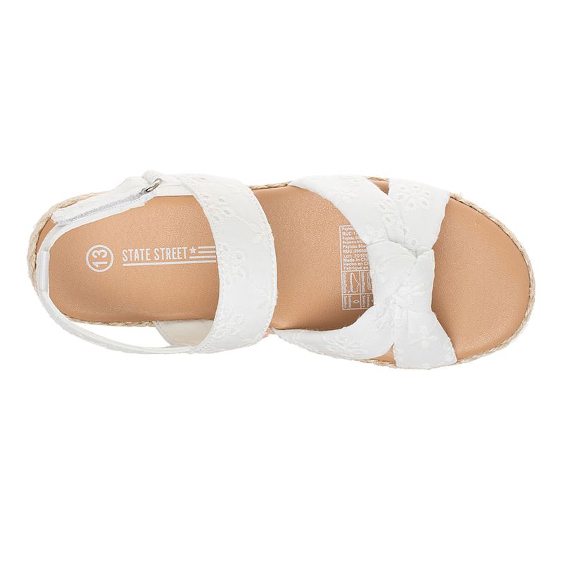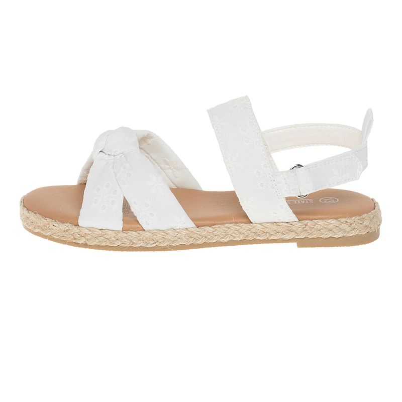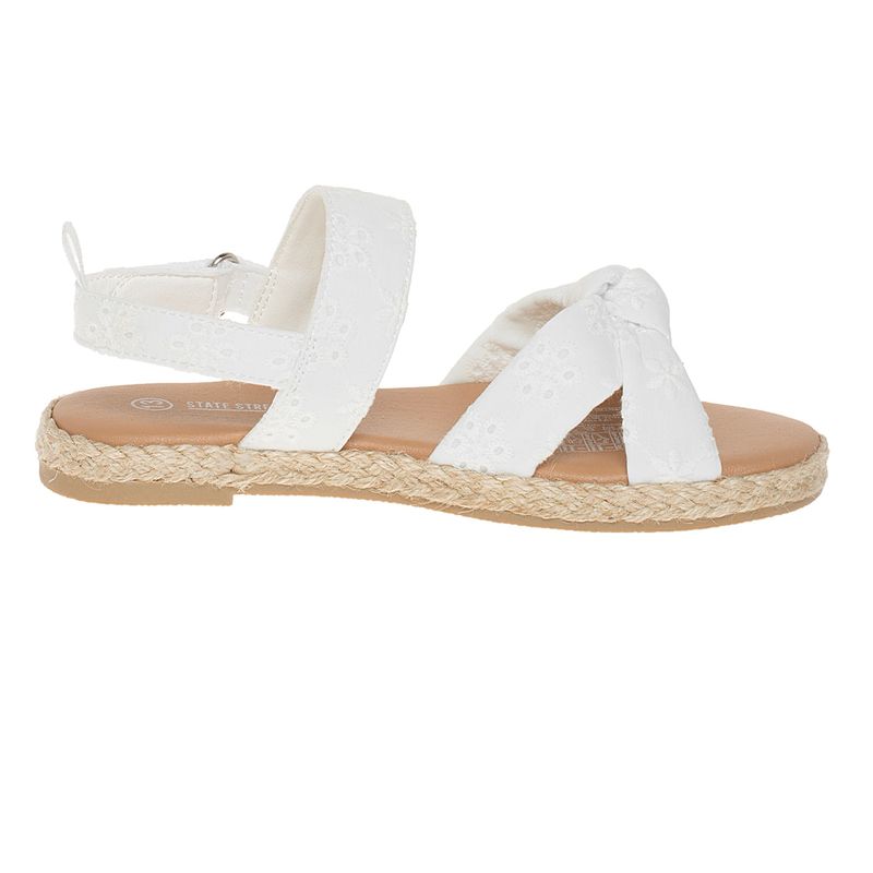 Dale un estilo fresco a tu peque con estas sandalias blancas de State Street. Con detalles de bordado y un elegante lazo delantero, son perfectos para cualquier ocasión. El diseño incluye una suela de yute y una correa ajustable, lo que garantiza la comodidad y la facilidad de uso durante todo el día.