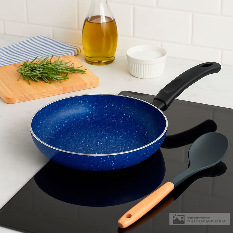 Sartén antiadherente de 20 cm. Diseñada para uso profesional con disco de inducción de calor. Material resistente y duradero con 3 capas de antiadherente para que nada se pegue. Mangos remachados. Apta para uso en cocina de gas, eléctrica, vidrio y de inducción.