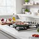 Conserva las mismas características técnicas de la serie Origin, aluminio con recubrimiento antiadherente Pfluon, mango reforzado en acero inoxidable, base compatible con todos los tipos de cocina, pero su tamaño amplio permite distribuir mejor el calor y trabajar con mayor cantidad de ingredientes.