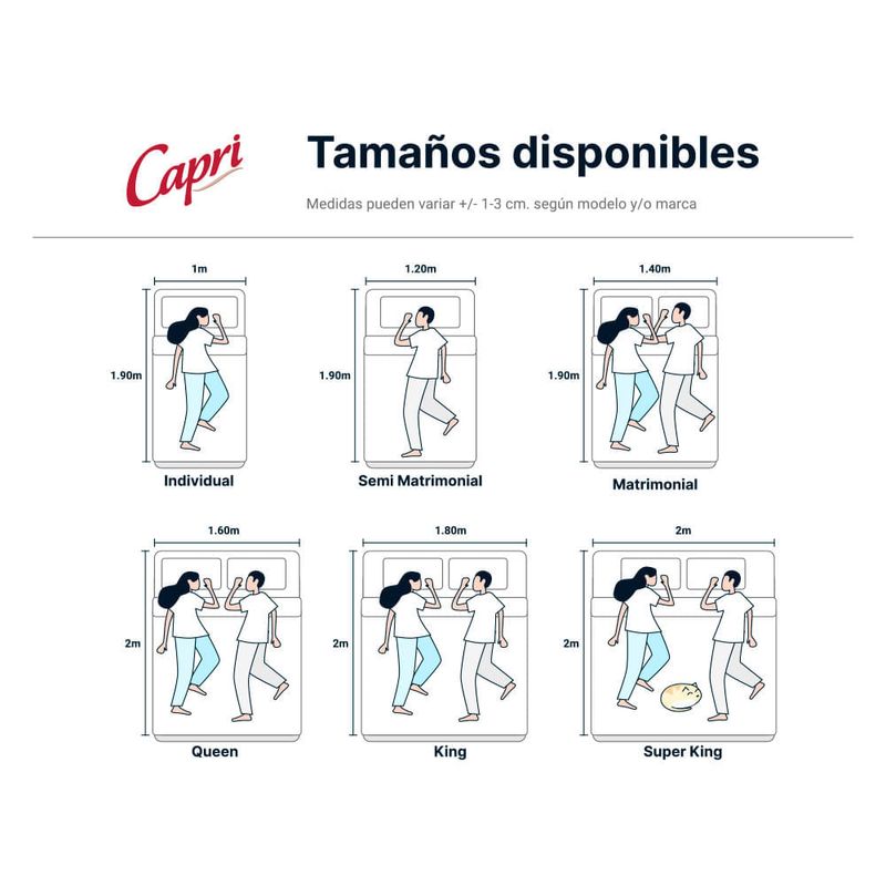 Descansá profundamente con la cama Capri modelo Super Rest Master, diseñada para ofrecer confort, higiene y durabilidad. Su nueva tela importada mimic con aloe vera es suave y fresca, con propiedades calmantes que promueven un descanso reparador. El colchón cuenta con tratamiento higiénico y antialérgico, ideal para prevenir microorganismos con el paso del tiempo.