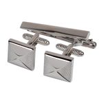 Set de mancuernillas y broche de corbata de la marca Perry Ellis, accesorios en color plateados.