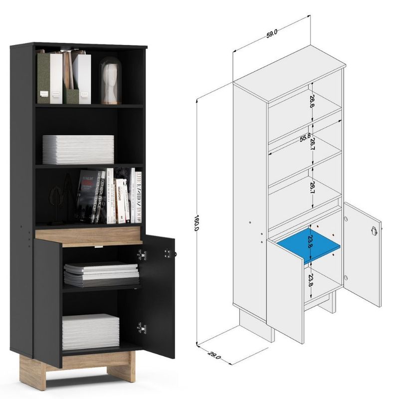 2-Librera con 5 repisas super espaciosas, las dos repisas inferiores contienen puertas con seguridad (llave), un estante perfecto para tu oficina.(Puedes comprarlo por individual)