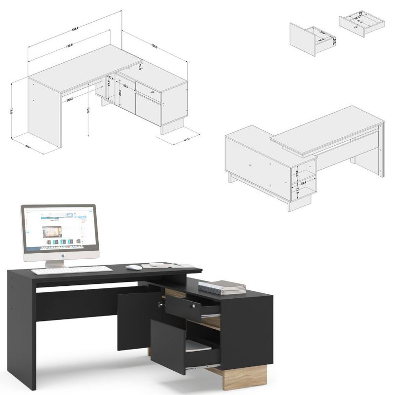 1-Escritorio esquinero con archivero al lado derecho, que consta de dos cajones, el mas pequeño es ideal para guardar documentos importantes ya que contiene llave. Un mueble muy útil para tu oficina. (Puedes comprarlo por individual)